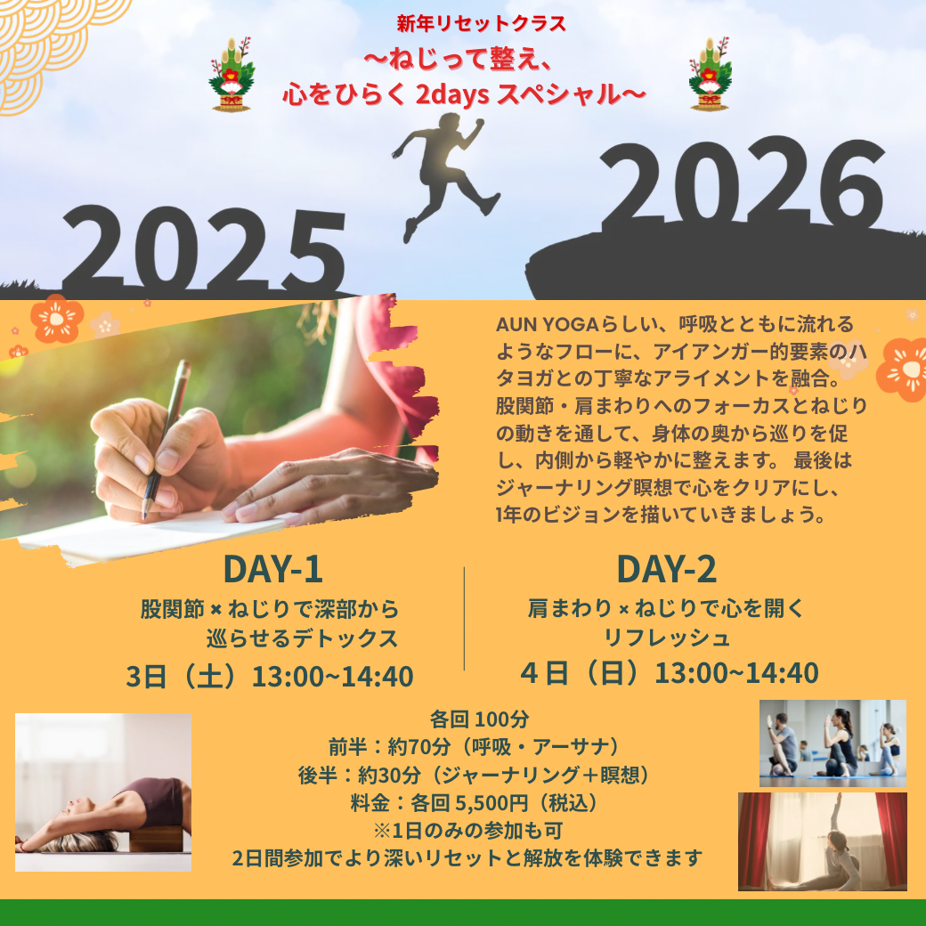呼吸とともに心が自然とひらき、新しい一年へのエネルギーを育てる時間です。