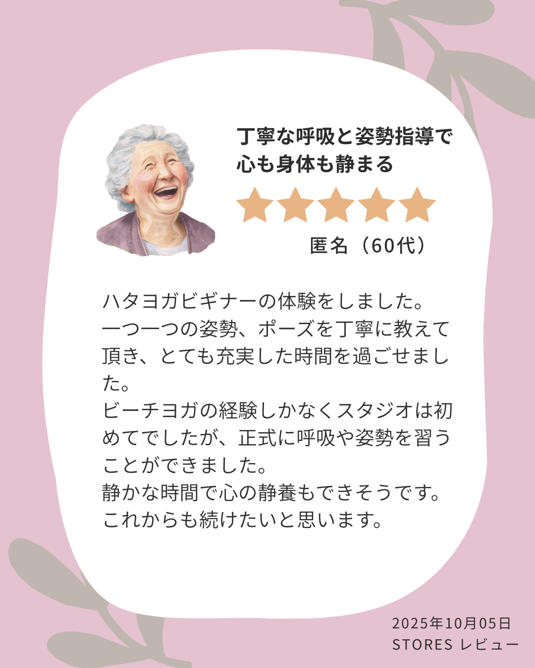 呼吸を大切に、やさしく進めていきますので、安心してご参加ください。